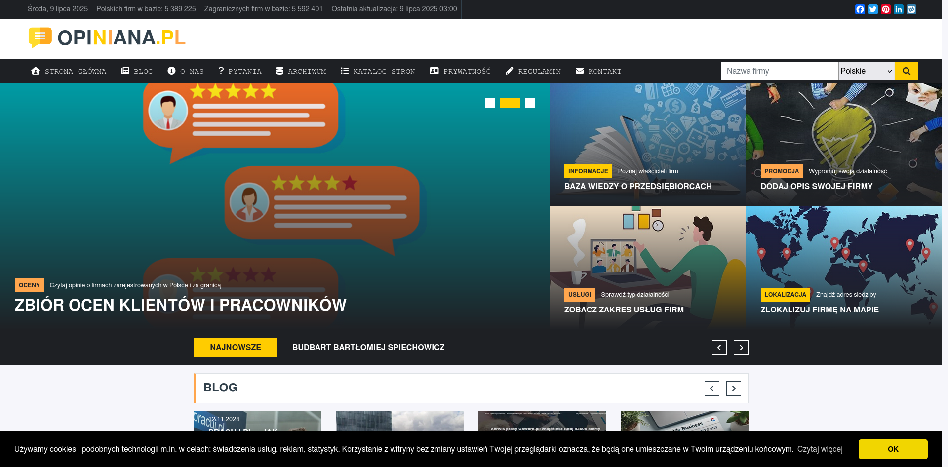 Opiniana © 2022 Opinie o firmach założonych w Polsce i za granicą. Wszystkie prawa zastrzeżone.