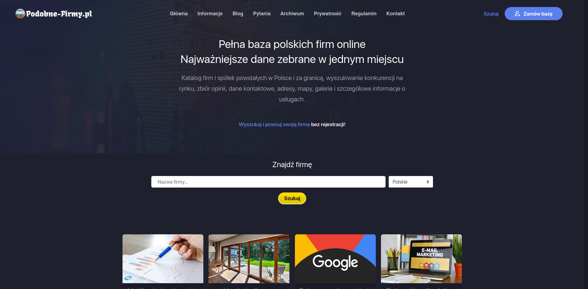 Największy w sieci zbiór opinii o firmach, spółkach i instytucjach. Poznaj szczegółowe dane i lokalizację firm polskich oraz zagranicznych. Promuj swoją działalność dodając unikalny opis oraz galerię zdjęć.